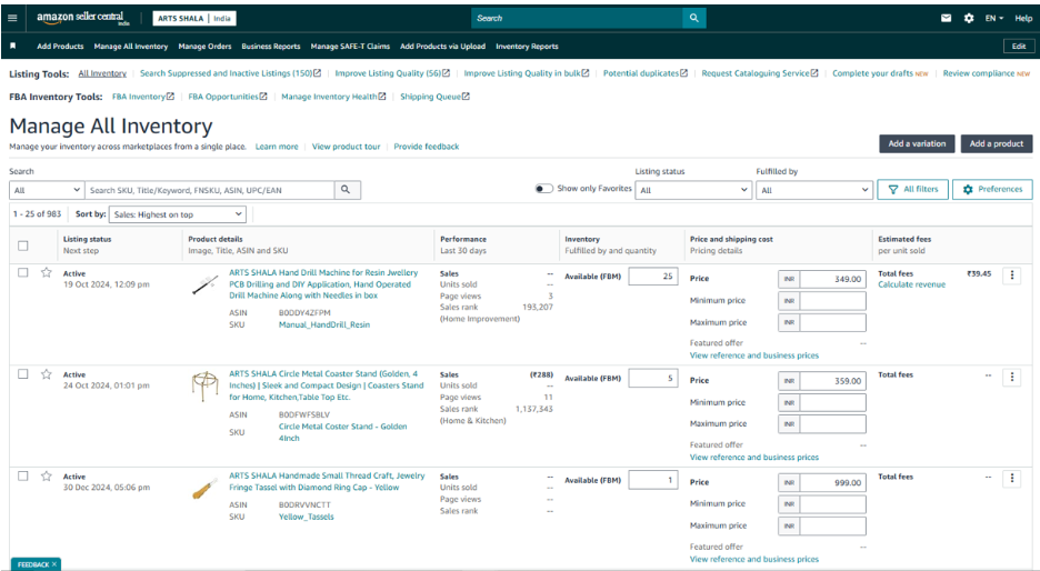 We have successfully optimized Arts Shala’s Amazon listings by integrating over 900 products with clear, keyword-enhanced titles and high-resolution images that are compliant with Amazon’s guidelines. Our strategy included detailed keyword research to improve search visibility without keyword stuffing. We set competitive prices by analyzing market trends and considering costs, including Amazon fees.